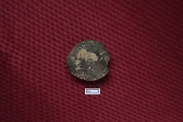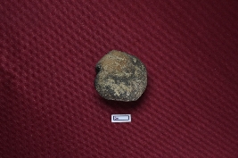 | Description / विवरण | A fragmented terracotta sling ball, black in colour. It has a smooth surface. |