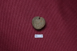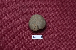 | Description / विवरण | This is a terracotta sling ball. It appears almost red. The surface is smooth. Cracks are visible. |