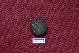 | Description / विवरण | A terracotta sling ball which is black in colour. It has a smooth surface. |