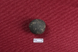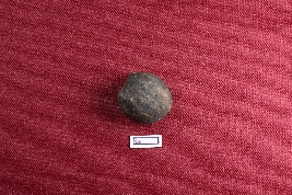 | Description / विवरण | An almost circular terracotta sling ball, black in colour and marked by a smooth surface. |