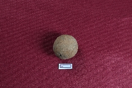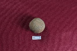 | Description / विवरण | A terracotta sling ball, red in colour and marked by a smooth surface. |