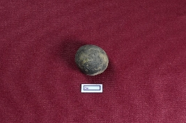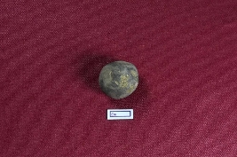 | Description / विवरण | This terracotta sling ball is nearly circular in shape and black in colour, with a smooth surface texture. |