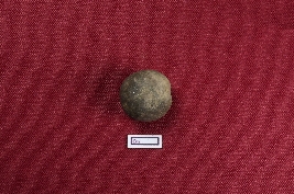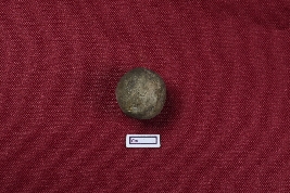 | Description / विवरण | A terracotta sling ball, almost grey and nearly circular, with a noticeably smooth exterior. |