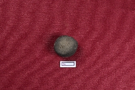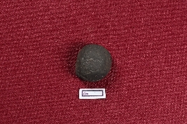 | Description / विवरण | A terracotta sling ball, black in colour and circular in shape, with a noticeably smooth exterior. |
