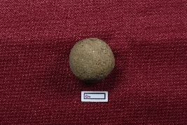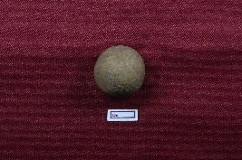 | Description / विवरण | The object is a terracotta sling ball, round and red in colour, with a smooth surface. |