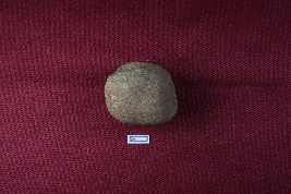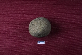 | Description / विवरण | This terracotta sling ball is nearly circular in shape and grey in colour, with a rough surface texture. |