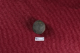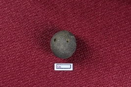 | Description / विवरण | The object is a terracotta sling ball, almost round and black in colour, with a smooth surface. |
