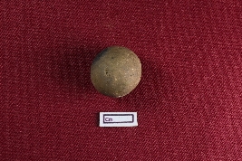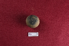 | Description / विवरण | A terracotta sling ball, red and nearly circular, with a noticeably smooth exterior. |