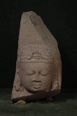 | Description / विवरण | The head is sculptured in flat planes, the locks of hair being carved as ribbons. |
