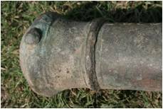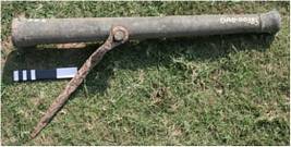 | Description / विवरण | This is small gun cast in bronze also known as a Narnal . This cannon is tappering from breech tomuzzle. The muzzle face is provided thick rim with sighting device for aiming. In the middle portion trunnions are small cylindrical extension on either side of the cannon engaged with forked swivel made in iron. This allowed cannon to turn around to change direction. Two inscriptions are engraved on the cannon. First inscription near the trunnion and second is on the muzzle portion. The vent hole seen on the left side of the breech provided with extended protection edge. Back site U is also provided on breech rim at the rear. |