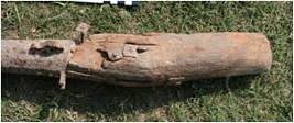 | Description / विवरण | This is a light hand gun cast in iron. Categorically it can be kept in shaturnal group. It is light weight artillery with long cylindrical barrel having flat cascabel fixed with the wooden butt with iron nails. The trunnions are provided as small cylindrical extensions in the middle of the gun. The muzzle face is faceted and neck is provided with reinforcement rings. The breech comprises vent hole on the right along with protection and aiming device in form of back site U. The wooden part of the gun is damaged. |