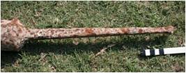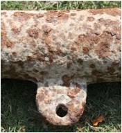 | Description / विवरण | This is a light piece of artillery cast in iron. It has cylindrical body almost parallel from muzzle to breech. In the middle portion of cannon a flat hook with perforation is provided. The muzzle is faceted with slightly faring out mouth. The cascabel is shaped like a long rod almost equal in length with the length of gun. |