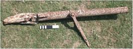 | Description / विवरण | This is a hand cannon cast in iron known as shaturnal . The cylinder of the gun appears almost parallel but it slightly tappers from towards muzzle with flaring out mouth. An astragal ring joins muzzle with chase. The trunnions provided in the middle of the chase are formed by combination of two thick bars bent in shape of ring around barrel further engaged with a fork swivel having perforated pointed end. The cascabel is fixed to wooden butt with iron nails which is now in fragmentary condition. The vent hole is seen on the right side of the breech with flash pan. It was provided with fore site point which is visible in form of a groove on muzzle ring and back site U on the breech rim. |