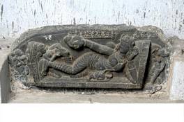 | Description / विवरण | Figure of a mother lying in the bed along with a child by her side. Above, from the right side seem to be representations of a linga, Ganesha, Kartikeya and the navagrahas. Female attendants are also depicted. |