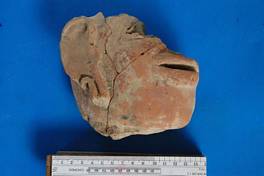 | Description / विवरण | Fragment of a big head preserving mouth right side face and ear. It is jointed in three pieces. |