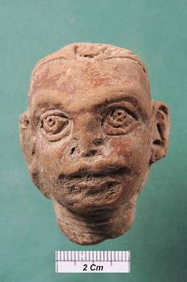 | Description / विवरण | Terracotta head. Hair arranged back side painted red. Nose and mouth worn out. |