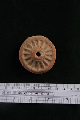 | Description / विवरण | Terracotta toy wheel with spokes on one face only. |