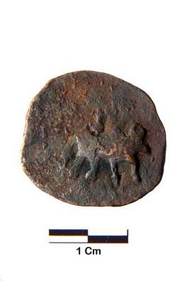 | Description / विवरण | Obverse- Tree in railing in the centre, tourine on the left. Trace of legend below. Reverse- Humped bull facing right. |