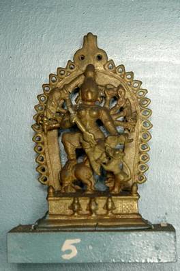 | Description / विवरण | A multi-armed Durga Mahisasuramardini in the act of slaying the buffalo demon. |