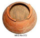 | Description / विवरण | Red ware pot with round base, slightly carinated waist, sloppy shoulders, convex neck with splayed out externally thickened rim. |