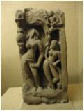 | Description / विवरण | This appears to the fragment left part of bigger composition. This is fragmented part shows the river goddess Ganga standing gracefully in tribhanga on her mount, the makara . Her left hand is placed on her waist Katihasta while by her right leg suffer from mutilations. Her female attendant is standing in svastika posture on a full blown lotus and carries the huge stalk of lotus that serves as a canopy over the head of the river Goddess Ganga. On the top left, a flying Vidyadhara is seen flying effortlessly with a garland in his hand. |