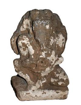| Description / विवरण | Seated Ganesa with two arms holding trident and modaka. Naga yajnopavita is prominently seen. |