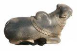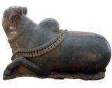 | Description / विवरण | Nandi to the right with the forehead turned towards left. It has a smooth glazy polish with prominent hump. There are garland of bells one around the neck in three strands and the other on the back behind the hump. The two fore legs turned inwards so as to touch the hind ones. |