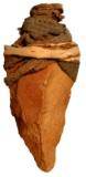 | Description / विवरण | Hand axe triangular in shape made on thick flake. It appears Rostreo Carinate hand axe type having neatly flaked surface on both the sides. A long flake scar is seen on one side and multiple flake scars on the other side, leaving mid rib portion untouched on the upper side. Plano-convex in its cross section. It is hafted to a wooden handle and displayed in the show case |
