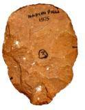 | Description / विवरण | Pear shaped hand axe made on thick flake. It has round flaked buttend and conical functional body with pointed edge broken . The occurance of shallow flake scars on both the faces suggests the application of soft hammer technique. Bi-convex in its cross section. |