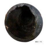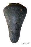 | Description / विवरण | Highly polished funnel shaped black ware lid with long conical pyriform bottom ended with small flat base. Tappered body with concave shoulders and straight projected rim Broken |