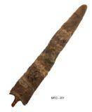 | Description / विवरण | A long knife with thick mid rib and sharp lateral blade edges. It has pointed top and, broad tang fitted into a socket of a hilt made of copper having a prominent tang. |