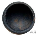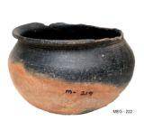 | Description / विवरण | Black and red ware pot with round base, concave body, sloppy shoulders, everted thick rim, multiple grooves below the rim. Part of the rim broken. |