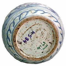 | Description / विवरण | Glazed pot with white and blue flower design. |
