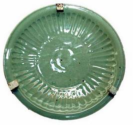 | Description / विवरण | Glazed plate of celadon ware with a fish motif in the centre. |