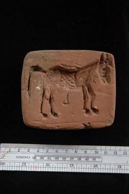 | Description / विवरण | Terracotta thick mould. It preserves an animal on either side. The animal on one side has an upraised tail. The animal on other side resembling a horse. |