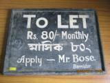 | Description / विवरण | A rectangular black coloured sign board mentions in bold English letters, TOLET. Below it Rs. 80 - monthly and below it in Bengali letters - Masika - 80 - and in last line apply Mr. Bose . Barister is written. |