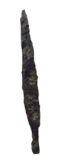 | Description / विवरण | A long spear head with leaf shaped elongated functional body with pointed top and sharp lateral blade edges, slightly lenticular in cross section. It has solid short tang with bulged end. |
