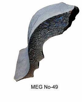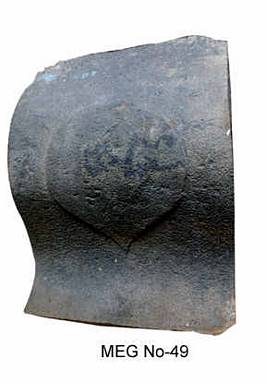 | Description / विवरण | Eve slab having a peepal leaf motif on its dorsal face. It looks like an elongated shaped body. It has thick top and thin flat lower end. In its ventral face has big cancave followed by two small concave depressions ended with flat slightly slopy surface. |