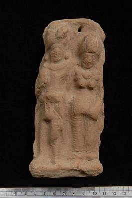 | Description / विवरण | Terracotta plaque preserving a standing couple. They are holding each other. |