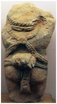 | Description / विवरण | It is the back portion of Naga. it Shows elaborate folds of dhoti at the back portion. There is also scarf with borders of beads, worn in the form of a cross with a rosette at the point of intersection. |