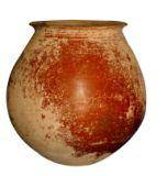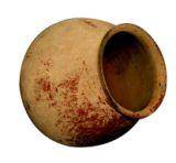 | Description / विवरण | A redware pot with round base and globular body, sloppy shoulders, convex neck, splayed out externally thick flat rim. Of medium it is treated with fine slip. |