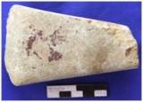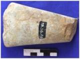 Fully ground with thick, smooth and flat with divergent margins. Ventral surface gradually slopes to intersect at the edge. The dorsal is flat showing edge grinding. Edge line is convex with utilization mark. Butt is broken. Rectangular in median section. The sides are flat. The tool is slightly concave on the ventral whereas the dorsal remains flat.