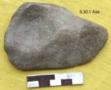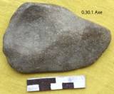 Made from a pebble with uneven surfaces. It is crudely made retaining use mark on the working end. The section is thin and undulating. The platform is uneven and retains small notches and a small flake scar. The right margin is little thick. The left margin is relatively flat. Patch of cortex is visible on both the faces. The tool retains use mark on the working edge.