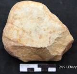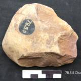 Bifacially modified. Dorsal has flat scar along both the margins and the anterior. Cortex on the half of the surface. Ventral modified along the right side. The anterior shows cortex. Right margin is irregular. Left margin is regular. The tool is broken due to excessive use.