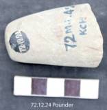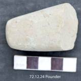 Ground all over. Butt is thick with a flat end. Broken on the body. The working ends retain battering marks. The tool is polished. It has narrow platform with gradually thickens towards the butt ends. The tool is broken may be due to use. The tool is polished on both the sides along the working edge. A grip is provided for holding the tool which is narrow and is chipped from both the margins.