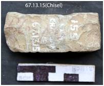 Roughly ground showing marks of chipping. The edge shows a recent fracture on the ventral surface. Dorsal shows edge grinding with a straight edge line. The tool is made with grinding and chipping method.
