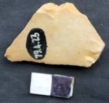 Made on a flake and secondary retouching in the farm of two deep flake scars are present on the ventral. The dorsal is slightly concave. The tool has two sharp waning edge from both the sides. The tool points towards the top edge which is again retouched. It has a sharp cutting edge near the platform. One side is straight and the other is tapering.