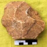 Flake scars on the dorsal which is longitudinally juxtaposed. A patch of cortex at the bottom end. The flake scars on the ventral are semi-convergent. Centrally elevated. The flake scars have been removed from different angels and from different directions. Slightly conical on the ventral and dorsal surface. The tool is sharpened all around by removing deep and bold flake scar.