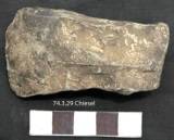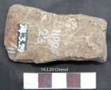 Shaped by flaking all over the surfaces with working edge bifacially ground. The edge line is straight. The lateral margins are slightly concave. Broken from the body. Rectangular in section. The section is uneven and retains flake marks. Patch of cortex near the working edge. The section is flat and tappers slightly towards the left margin.