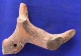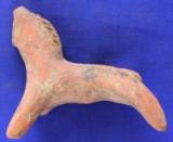 Crude model of a headless animal figurine with a long neck. Right frontal and hind left legs are missing. Oblique lines are all over the body.